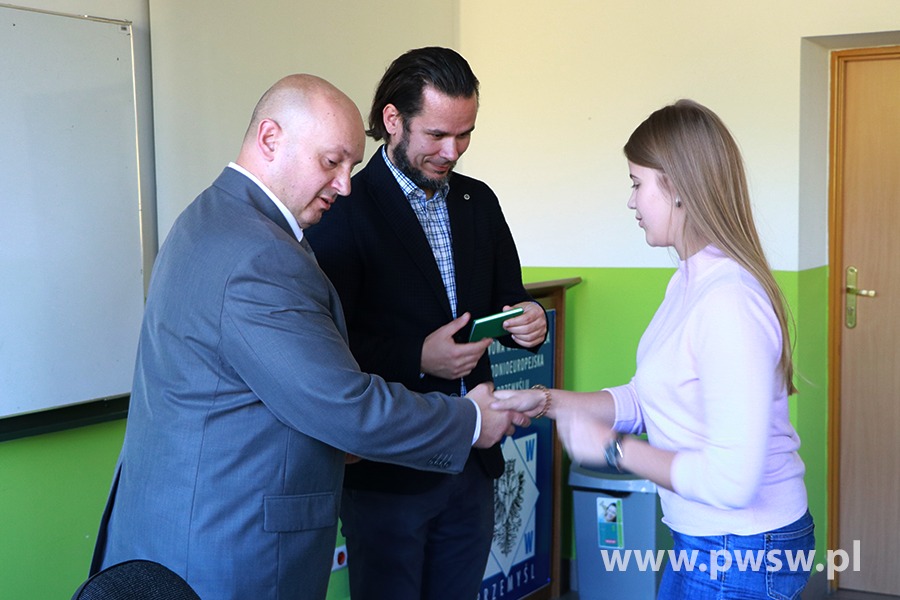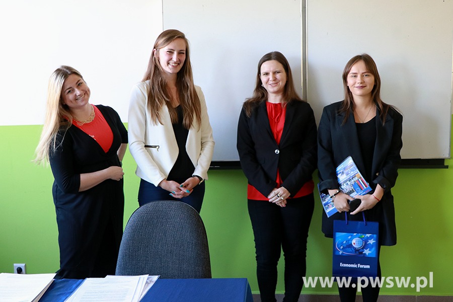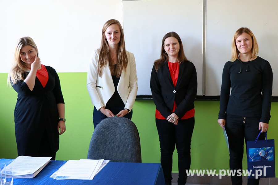 Częścią uroczystości było spotkanie podsumowujące XXVIII Forum Ekonomiczne i 9. TAURON Festiwal Biegowy w Krynicy-Zdroju. Gośćmi uroczystości były Paulina Kulik i Kamila Laskowska, przedstawiciele Instytutu Studiów Wschodnich, głównego organizatora Forum Ekonomicznego i Festiwalu Biegowego w Krynicy-Zdroju, jako największej konferencji Europy Środkowo-Wschodniej, które opowiedziały o możliwościach jakie daje udział w praktykach podczas Forum Ekonomicznego. W swoim wystąpienie złożyły również podziękowania studentom naszej Uczelni, za współpracę, zaangażowanie i sumienne wykonywanie powierzonych im zadań oraz wręczyły zaświadczenia o wzięciu udziału w praktykach studenckich podczas tegorocznego przedsięwzięcia. Spośród 30 osób z PANS, w tym również studenci i absolwenci Stosunków międzynarodowych, które brały udział w praktykach, 6 osób – studenci i absolwenci kierunku Stosunki międzynarodowe, uzyskało wyróżnienie opiekuna sekcji, a tym samym otrzymali potwierdzenie umiejętności organizacyjnych oraz rekomendację jako pracownika odpowiedzialnego przy organizacji wydarzeń konferencyjnych i sportowych. Na zakończenie swojego przemówienia, prelegentki zaprosiły wszystkich studentów, a w szczególności tych, którzy rozpoczęli swoją edukację w bieżącym roku akademickim do współpracy podczas nadchodzących wydarzeń.