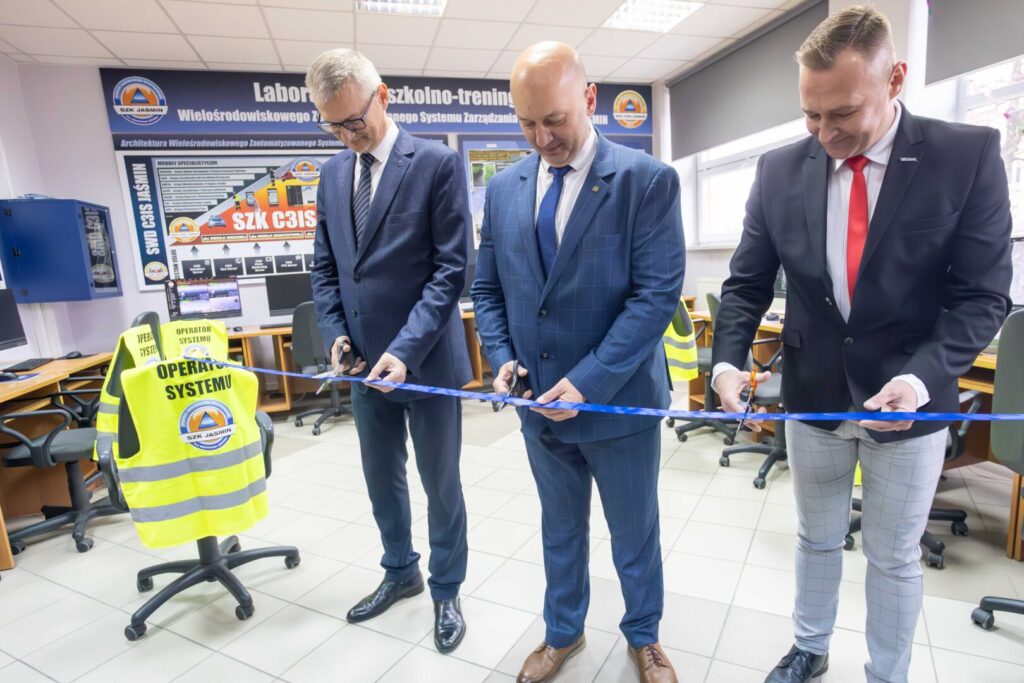 20 listopada br. symboliczne przecięcie wstęgi w Laboratorium szkolno-treningowym Wielośrodowiskowego Zautomatyzowanego Systemu Zarządzania Kryzysowego „JAŚMIN” (SZK JAŚMIN), którego dokonali JM Rektor dr hab. Marek Delong, prof. PANS, Zastępca Prezydenta Miasta Przemyśla – Krzysztof Majcher oraz Zastępca Dyrektora Departamentu Marketingu i Handlu firmy Teldat – Łukasz Blechman, uroczyście otworzyło drzwi do nowej ery szkoleń i symulacji w dziedzinie bezpieczeństwa publicznego.